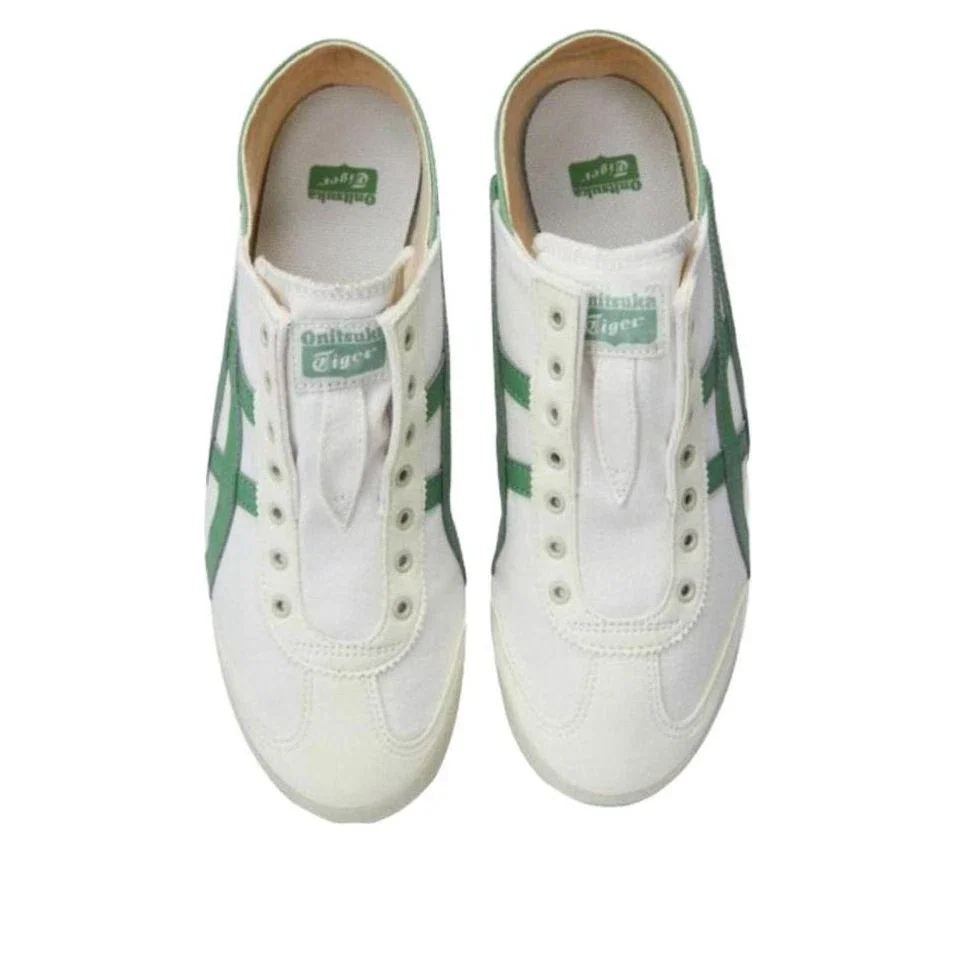 Las Mexico 66 Paraty de Onitsuka Tiger en blanco y verde combinan la artesanía japonesa clásica con el estilo urbano moderno. La piel de primera calidad, las icónicas rayas Tiger Stripes y la plantilla acolchada ofrecen estilo y comodidad. Marca tu estilo con estas zapatillas duraderas e inspiradas en la tradición.